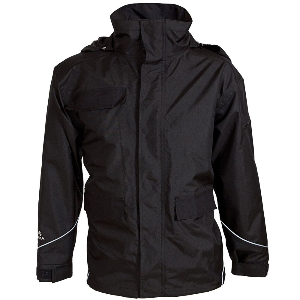 Aftagelig hætte, 2-vejs lynlås, Refleks piping, dobbelt vindfang m. trykknapper,