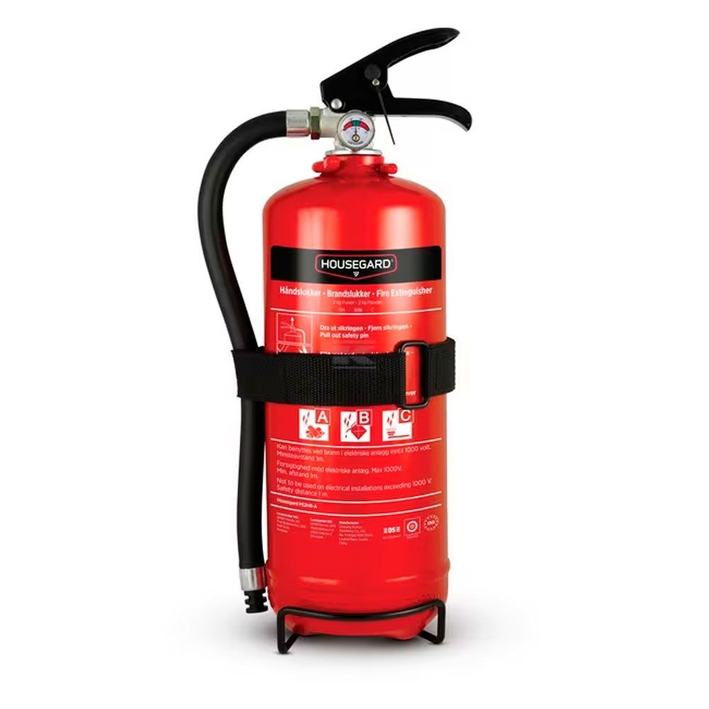 Med en 2 kg pulverbrandslukker fra Housegard i bilen, rejser du lidt mere sikkert på vejen. Slukkeeffekten på 13A 89B C er den højeste slukkeeffekt på markedet og godt tilpasset til at slukke alle typer af mindre brande, der kan forekomme. Den er også perfekt som supplement til en 6 kg pulverslukker i hjemmet, for hurtigt at kunne slukke mindre brande. Housegards pulverbrandslukkere er kvalitetssikrede og certificerede af DNV.