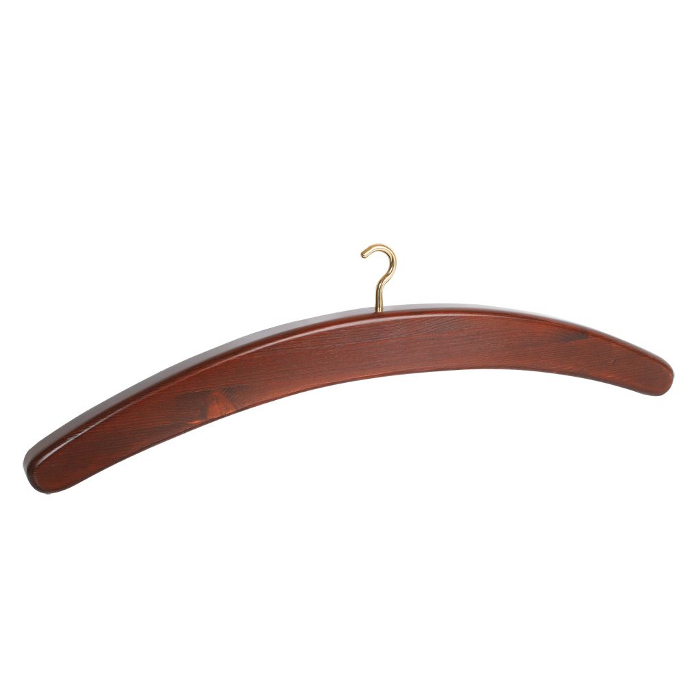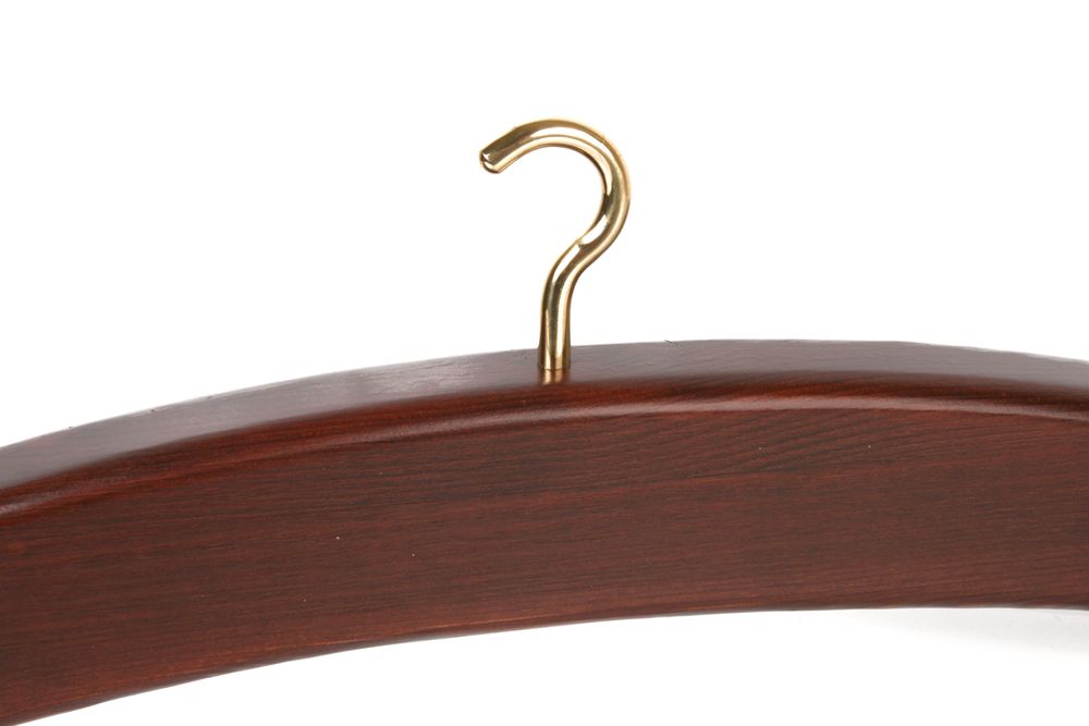 Bøjlen er fremstillet i lakeret, mørkt bejdset fyrretræ, hvilket giver et elegant og klassisk udtryk. De bløde afrundinger beskytter stoffet og forlænger levetiden på messehagelen.