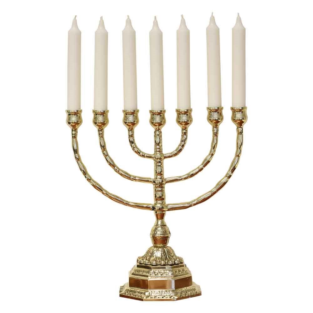 Den syvarmede stage er en kopi efter et billede på Titus-buen i Rom, hvor romerske soldater har røvet lysestagen fra Jerusalems tempel i år 70.