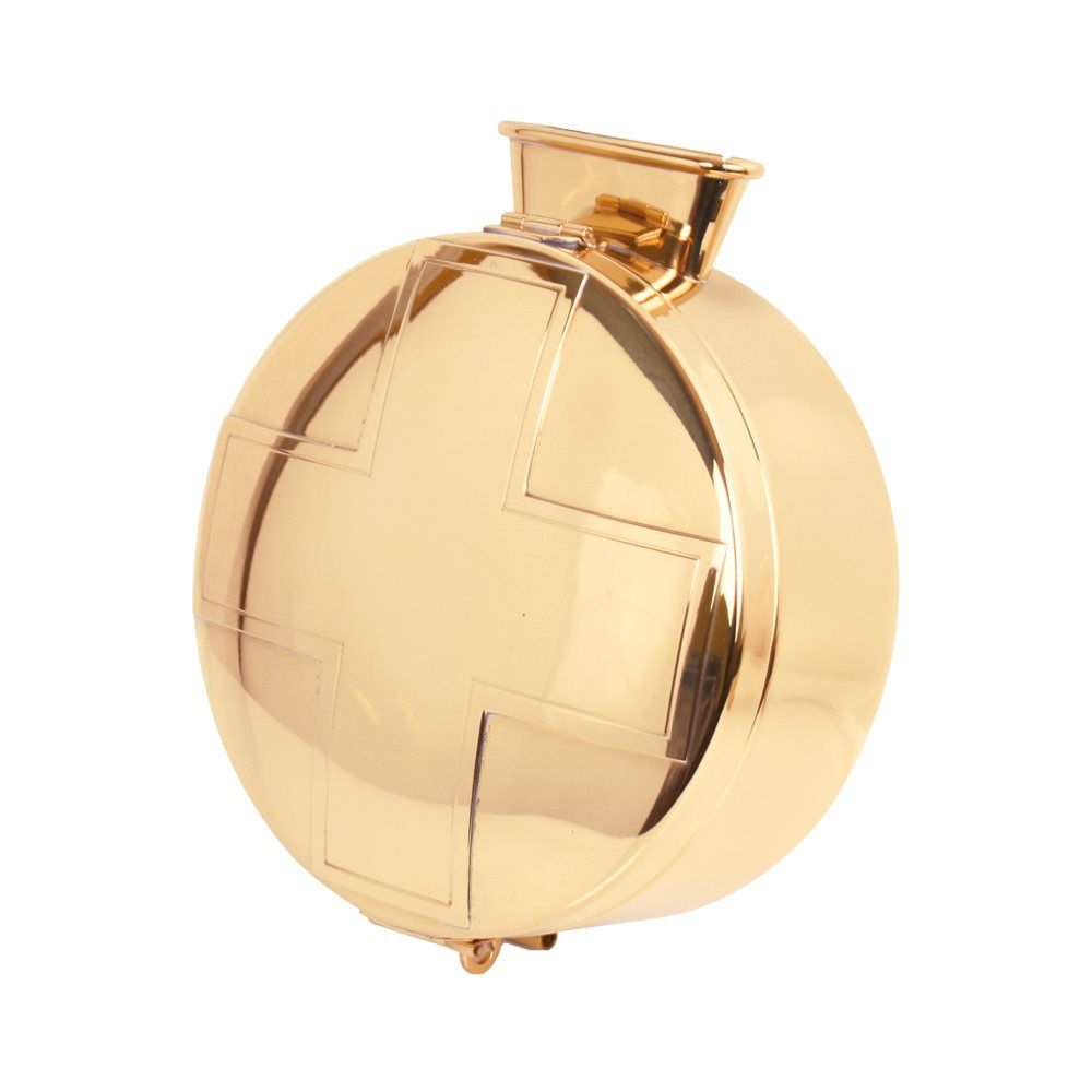 Flot klassisk kirkebøsse i messing. Kirkebøssen er med udtagelig messing indsats til opsamling af penge.