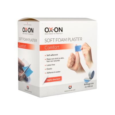 OX-ON Soft Foam Plaster Comfort er et blodstandsende blåt plaster i tværelastisk kvalitet, der sikrer dig god bevægelig over leddene. Den blå farve gør plastret nemt at få øje på og anbefales af fødevarestyrelsen. Det latexfrie plaster er særdeles hudvenligt, da det er limfrit og derfor ikke hænger fast i hud, hår eller sår. Plastret er selvhæftende og vandfast, så det kan anvendes både på tør og våd hud. Gror ikke fast på huden og efterlader ikke fiberrester i såret og kan derfor lægges direkte på brandsår. En unik skumforing gør plastret særlig velegnet til bandagering ved brud på tæer, ben, arme og hænder. Mål: Bredde: 6 cm Længde: 4,5 m