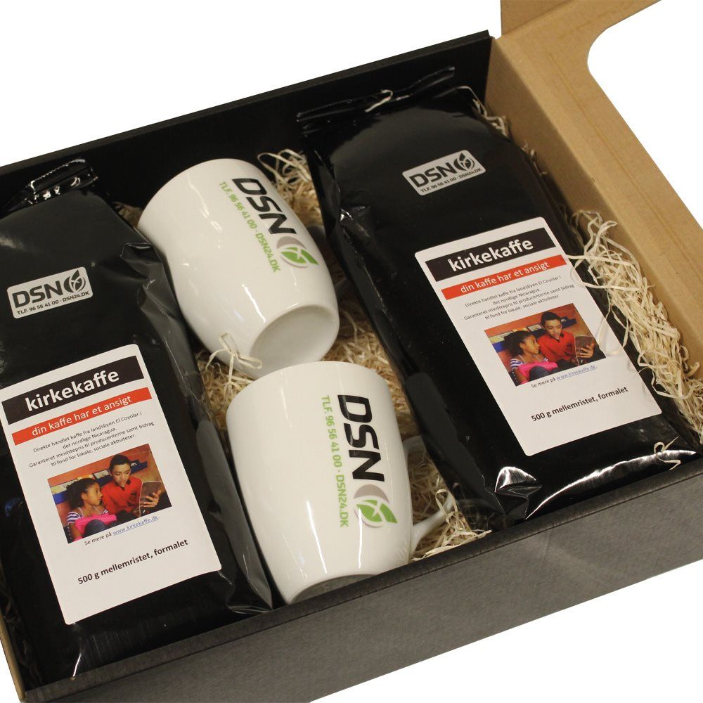 Forkæl dig selv eller en du holder af med vores gaveæske, lavet til dem, der sætter pris på gode stunder. Denne elegante æske indeholder to smukke DSN kaffekrus og to poser af vores populære kirkekaffe. Kaffen er indkøbt direkte hos producenterne i landsbyen El Coyolar i Matagalpa-provinsen i Nicaragua. Vi betaler bønderne jf. Fair Trade vilkårene. Gør øjeblikkene særlige og del glæden ved en god kop kaffe med vores gaveæske en smagfuld gestus til dem, du holder af.