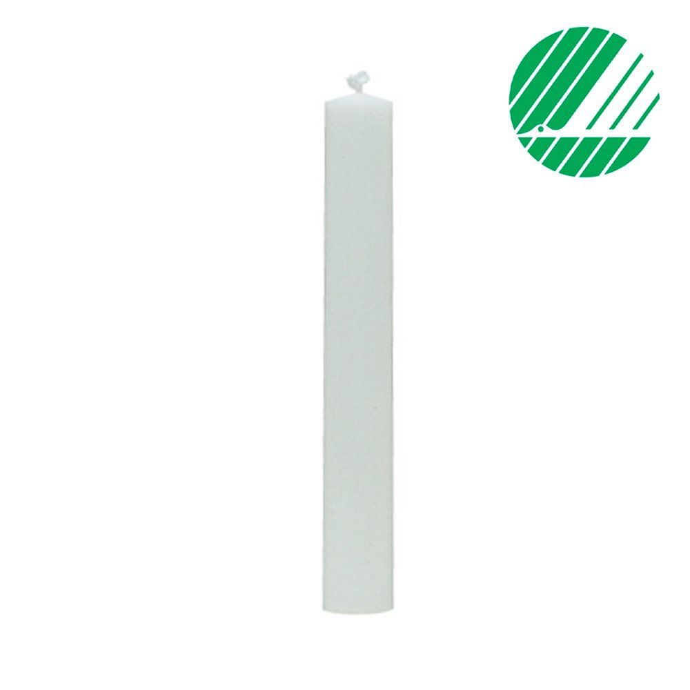 Et klassisk alterlys lavet af 100% stearin. Svanemærkede lys skal være lavet af fornybare råvarer. Det betyder, at der samlet set ikke dannes CO2, når du brænder dem, fordi råvarerne har optaget CO2, da de blev dyrket.