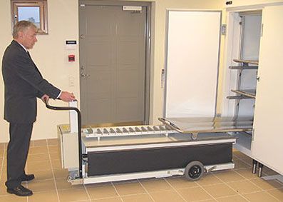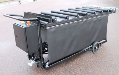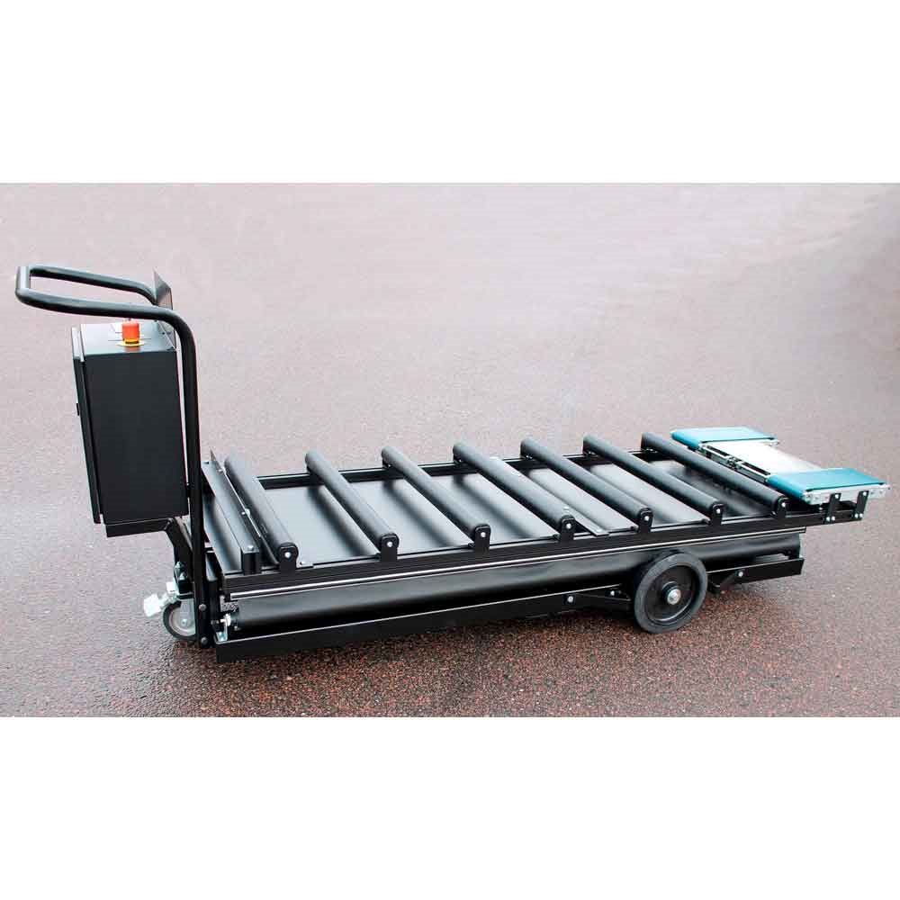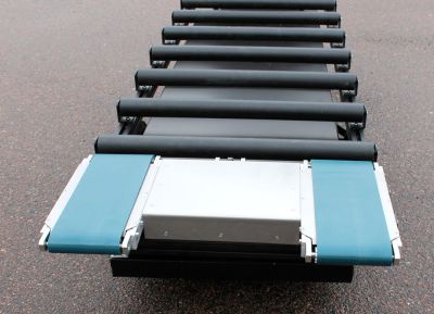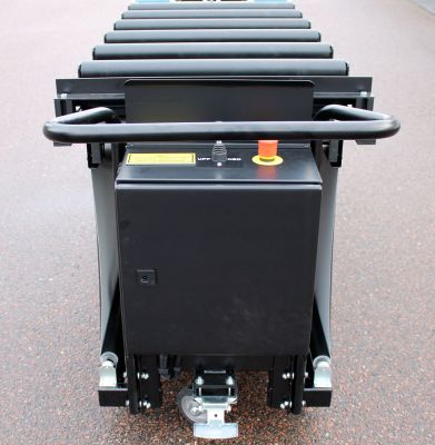 Let at håndtere, smidig, hæve- og sænkbar samt udstyret med båndtransportør og ruller.