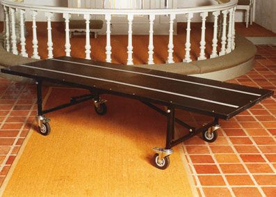 Katafalken kan klappes sammen, så den fylder minimalt.