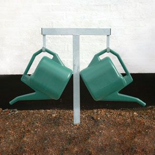 Med 2 kroge til at holde vandkanderne sidelæns, så vandkandestativet kan placeres ganske tæt op ad en væg eller lignende.