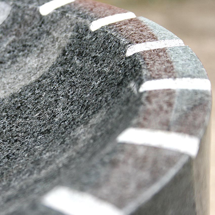Askebægeret er udstyret med en udskåren skuffe til opsamling i granit.