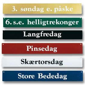baggrundsfarver, der modsvarer de liturgiske farver i kirkeåret.