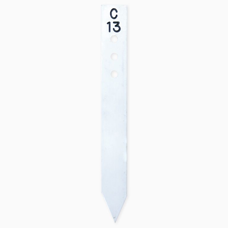 Aluminiumsspyd med 3 huller og igraveret nummer ilagt sort farve.
