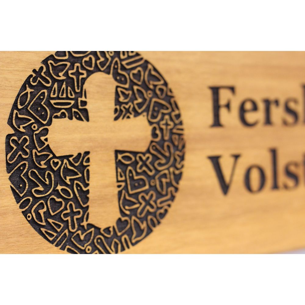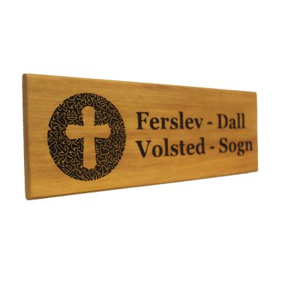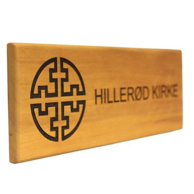 Det klassiske udtryk i mahogni passer perfekt til kirkelige bygninger, sognegårde eller kirkekontorer, hvor der ønskes et skilt med både kvalitet og æstetik. Et smukt og miljøvenligt valg til jer, der værdsætter håndværk, tradition og en naturlig finish.