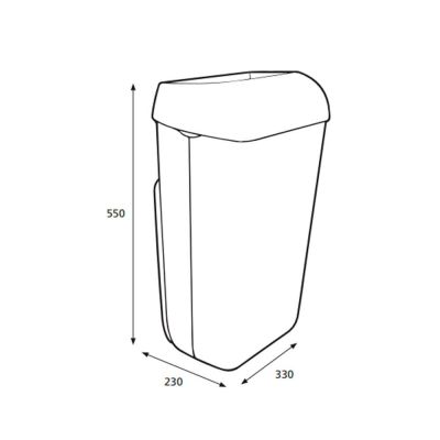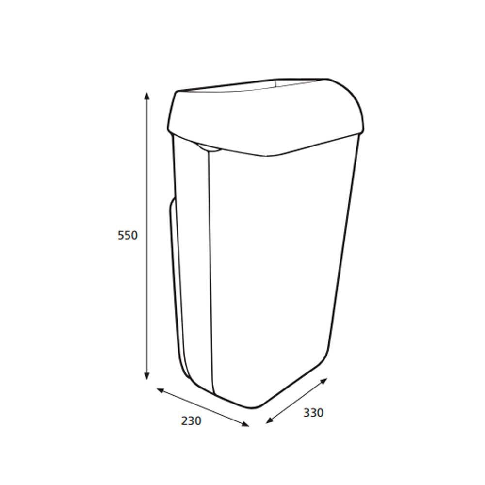 Katrin affaldsbeholder til vægmontering, som letter både rengøring og poseskift. Affaldskurven har et påhæng, så man selv kan vælge om den skal monteres på væggen eller stå på gulvet. Den kan bruges med eller uden det medfølgende låg.
