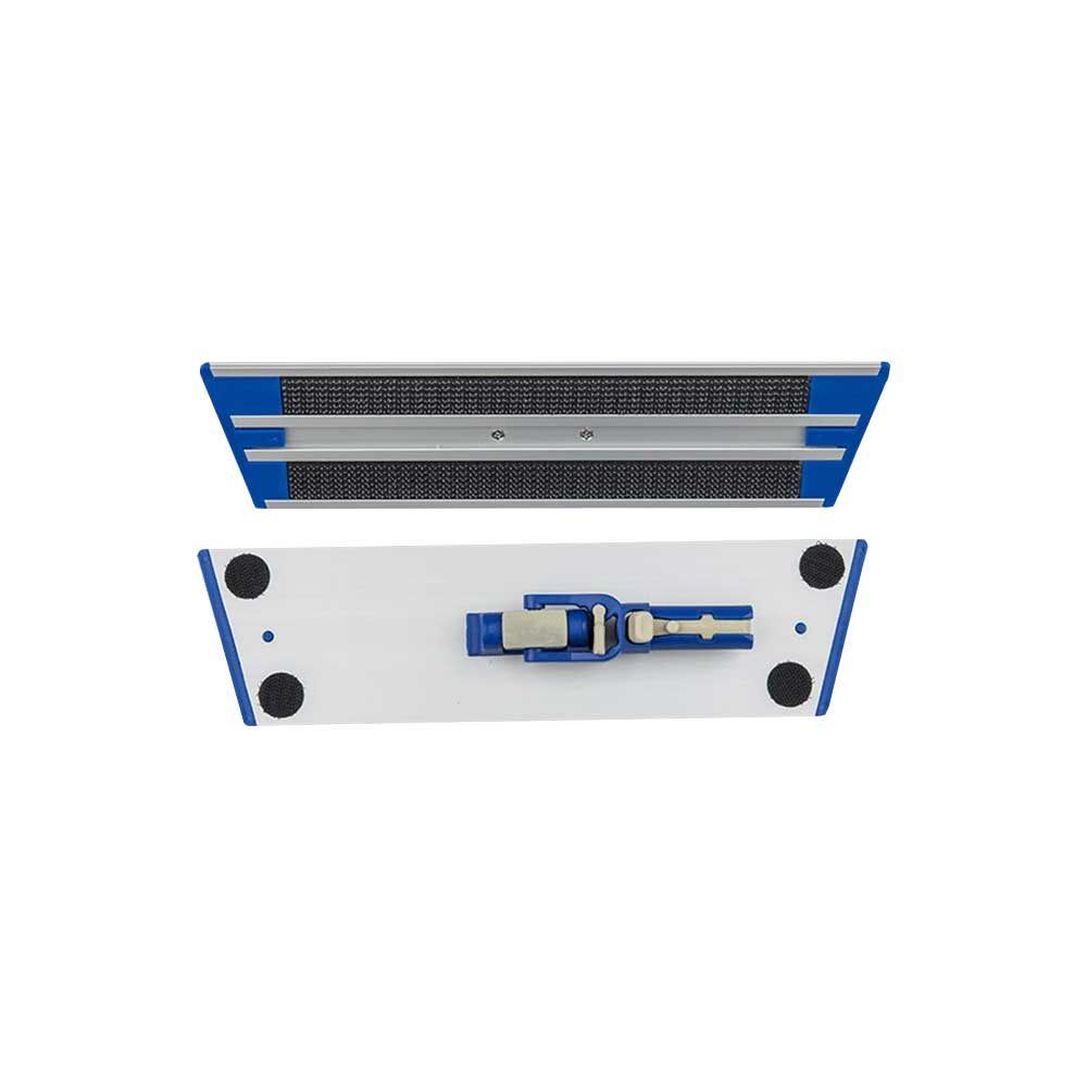 Hæfter på moppen ved hjælp af vulkaniseret velcro. Det er muligt at fæstne moppens kanter oven på fremføreren, så møbler og paneler bliver skånet for mærker. Endestykkerne går ikke af ved slag.