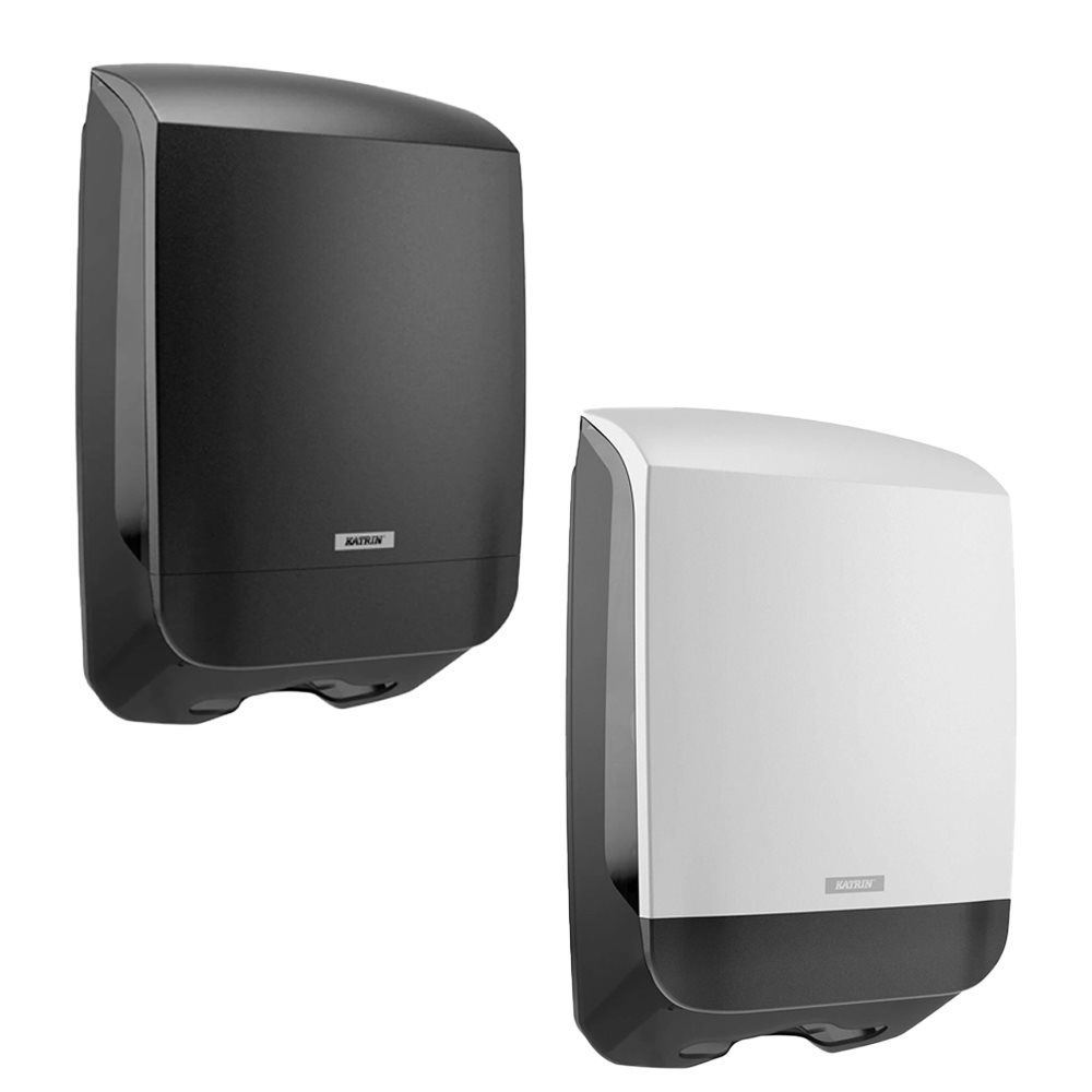 Katrin håndklædeark dispenser er en pålidelig og praktisk løsning til kirkens behov for hygiejne. Den er designet til at fungere problemfrit med alle typer sammenfoldede papirhåndklæder fra Katrin med en maksimal bredde på 240 mm. Dispenseren er fremstillet af robust sort plast og har en smart opadgående åbning, der gør det nemt at genopfylde håndklæderne.