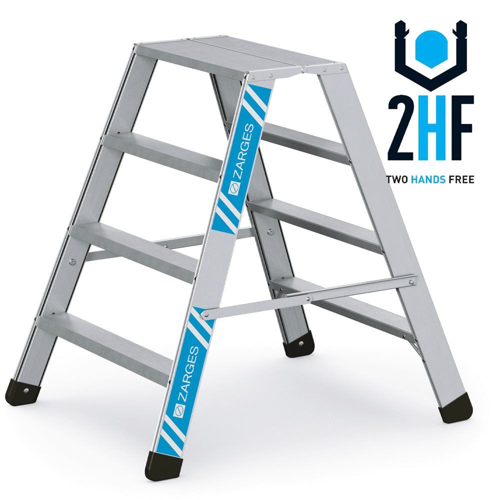 Produkter, som er mærket med Two Hands Free-logoet (2HF), lever op til en række anbefalinger fra Branchefællesskabet for arbejdsmiljø i Bygge & Anlæg omkring brug af trinskamler og platformsstiger ved arbejde i højden med begge hænder.