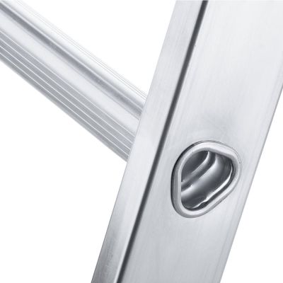 - Holdbar konstruktion: Trinhager og topbeslag er fremstillet af slidstærkt ekstruderet aluminium, og stigens stigesko er udskiftelige for skridsikker stabilitet.