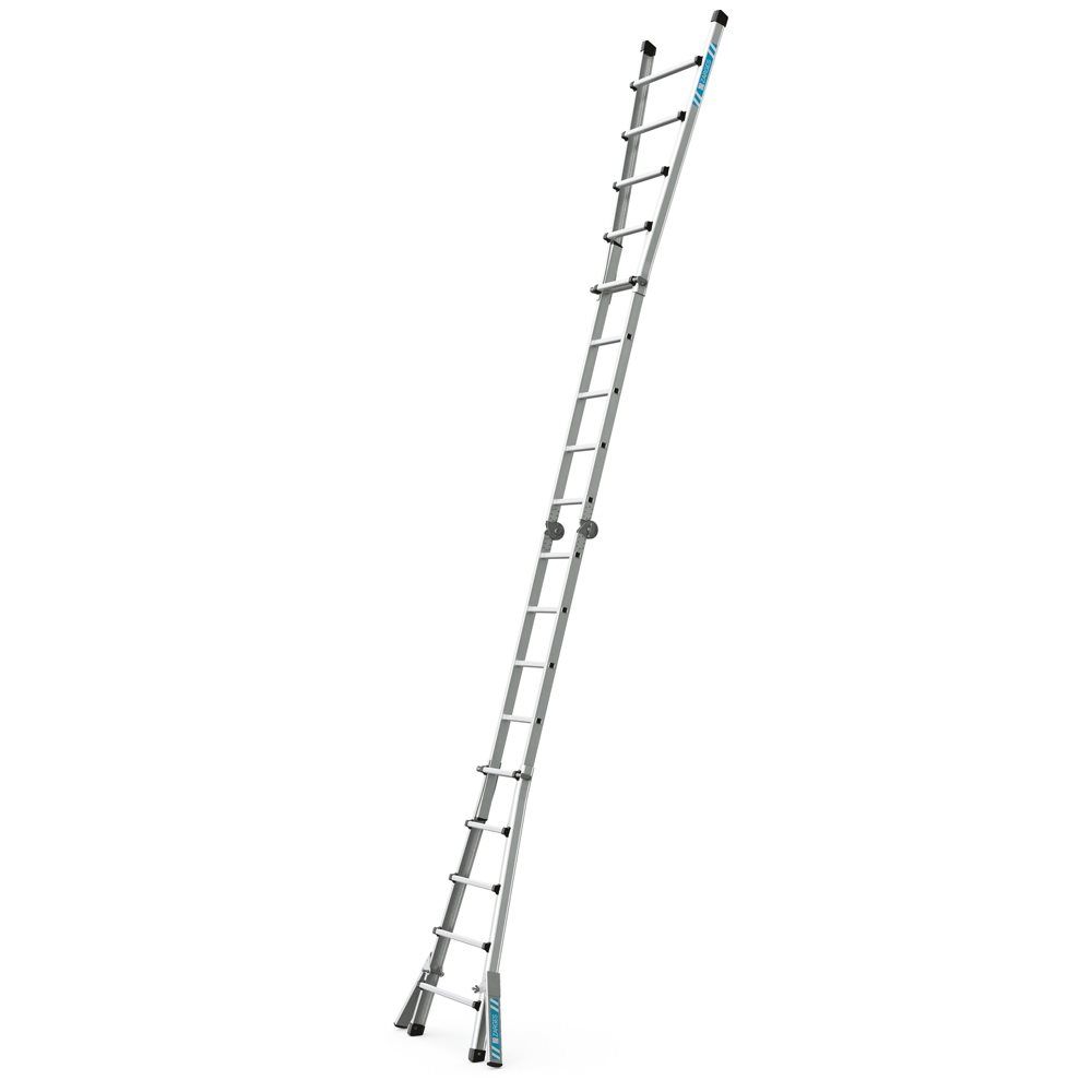 - Multifunktionel stige, der kan trækkes ud og anvendes på trapper, med kompakt transportmål i robust udførelse med lang levetid.