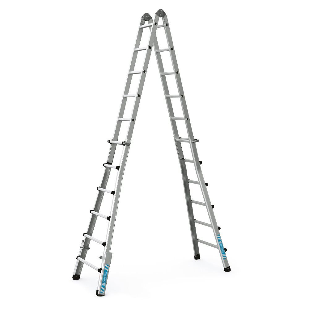 - Multifunktionel stige, der kan trækkes ud og anvendes på trapper, med kompakt transportmål i robust udførelse med lang levetid.