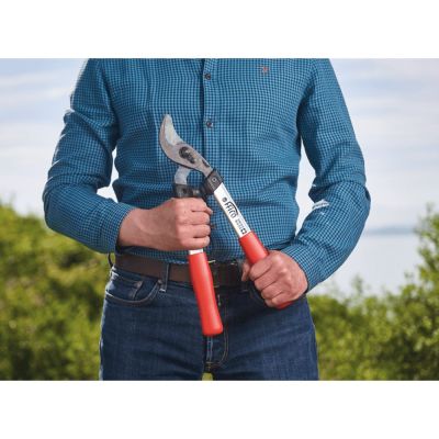 Kraft og let beskæring karakteriserer de fremragende egenskaber ved den lette og robuste grensaks FELCO 211-40, der henvender sig til medarbejderen på kirkegården. Når du først har besluttet at foretage et snit, er der aldrig nogen tvivl om resultatet, især når den buede underklinge trækker træet ind i skærehovedet. Det justerbare, buede skærehoved giver dig den nødvendige styrke i en kompakt størrelse, så du trygt kan skære igennem kraftig bevoksning. De lette aluminiumshåndtag har en I-bjælkekonstruktion, der er ideel til krævende beskæring. Komforten stammer fra gummistøddæmperne, der isolerer dine håndled og arme, når du skal beskære de større grene.