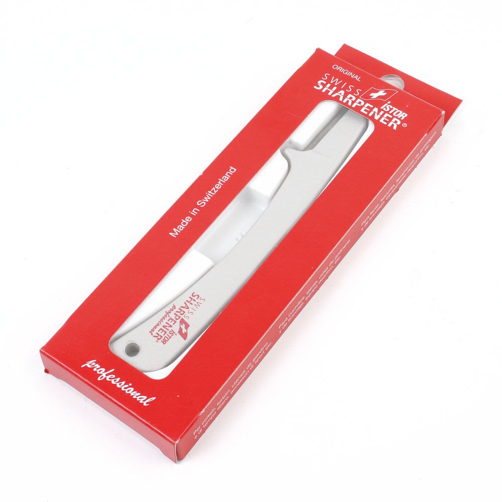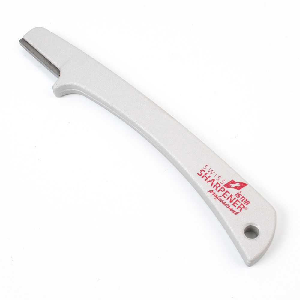 Træk langs begge sider af skæræggen flere gange med let hånd. Arbejd med den ene side af slibestenen i en vinkel på 30-50 grader.
