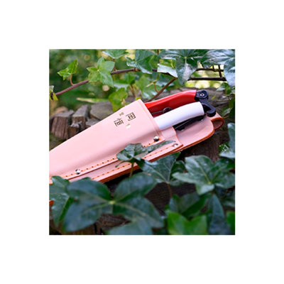 Et lækkert læderhylster med plads til 2 beskæresakse. Kan også anvendes til andet værktøj/redskaber.