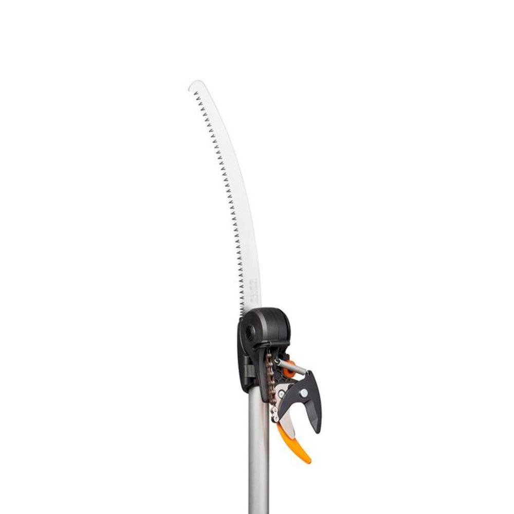 Monteres let uden brug af værktøj. Velegnet til tykke, højtsiddende grene. Rustfri klinge.