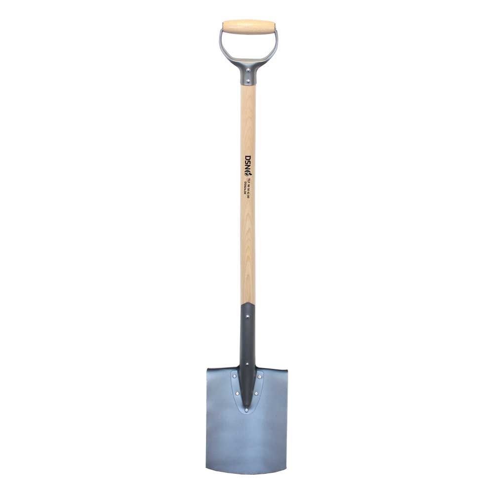 DSN lang havespade er med lakeret asketræsskaft og kraftigt jern D-greb. Spadens blad er nittet og hærdet.