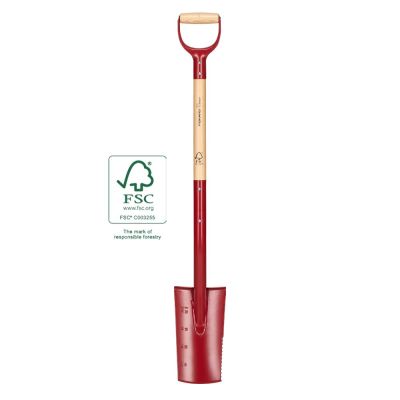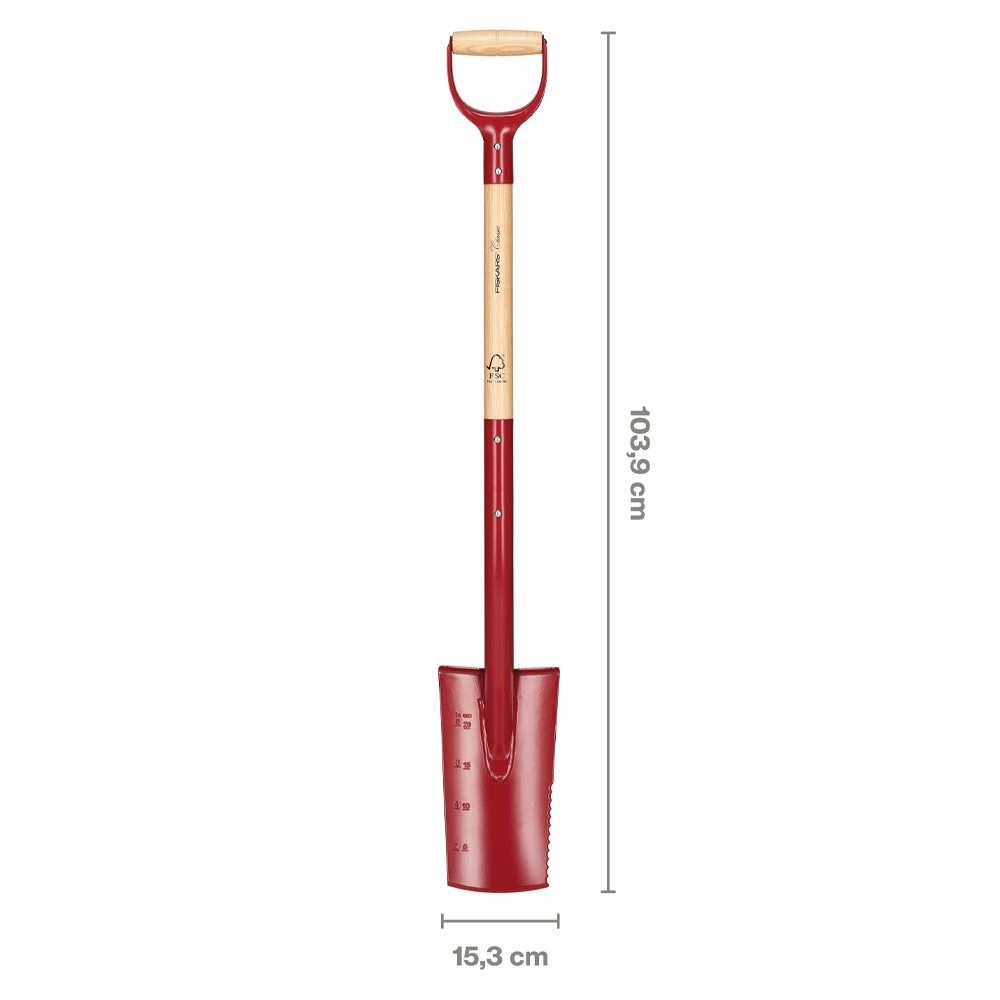 Det autentiske træskaft er FSC®-certificeret (FSC C108780), og det behagelige D-formede håndtag passer til alle hænder, med og uden handsker. Med en længde på 104 cm er denne staudespade et pålideligt redskab, der kun bliver bedre med tiden, takket være sit tidløse design og fokus på detaljer.