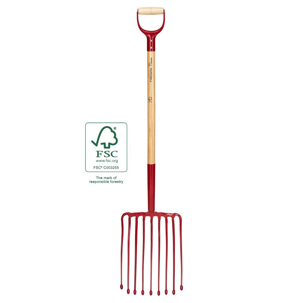 De buede tænder på grebet er designet til at opsamle eksempelvis sten eller andet, mens grebets hoved er lavet af borstål for at give ekstra styrke og holdbarhed. Det autentiske træskaft er FSC®-certificeret (FSC C108780), hvilket garanterer bæredygtig skovforvaltning.