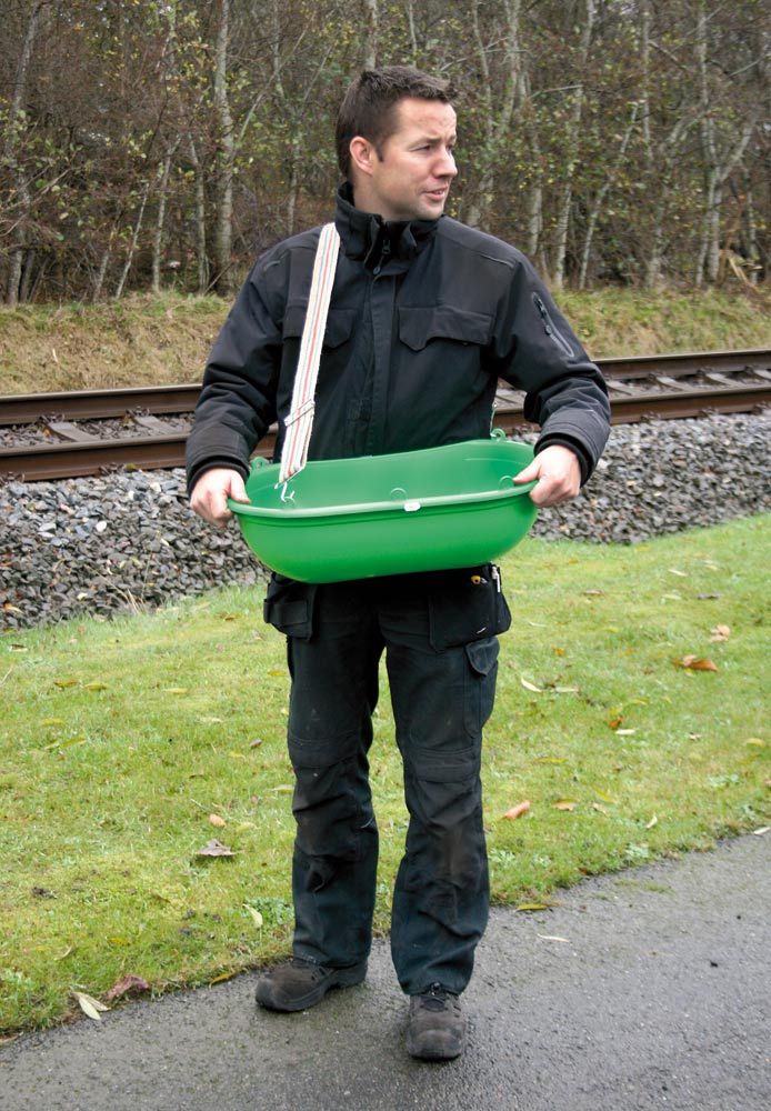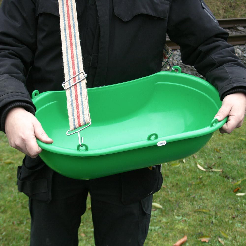 Praktisk og let såbalje/spredebalje med justerbar rem, ideel til kirkegårdens mange opgaver. Den ergonomiske rem kan placeres på flere måder for at sikre en behagelig arbejdsstilling, hvilket gør såarbejdet mindre belastende.