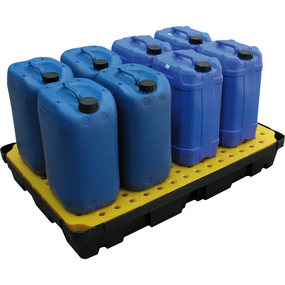 Opsamlingskaret er fremstillet af 100% genanvendeligt UV-resistent sort polyethylen. Opsamlingskaret/sikkerhedspallen leveres med gul rist udstyret med anti-skrid overflade. Opsamlingskaret kan bruges med eller uden rist og er let at rengøre.