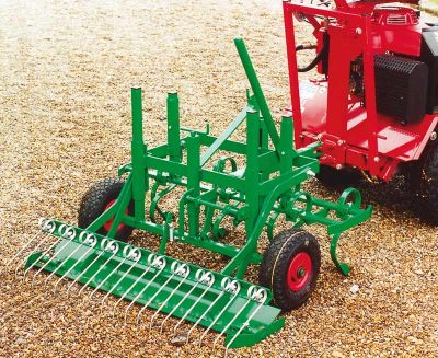 Miljøriven skuffer, planerer og river i én arbejdsgang og er anvendelig både på smalle gange såvel som på større arealer. Riven følger traktorens/truckens spor og kræver derfor minimal plads ved runding