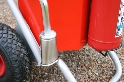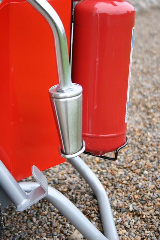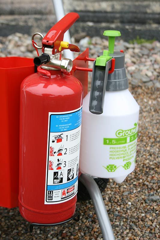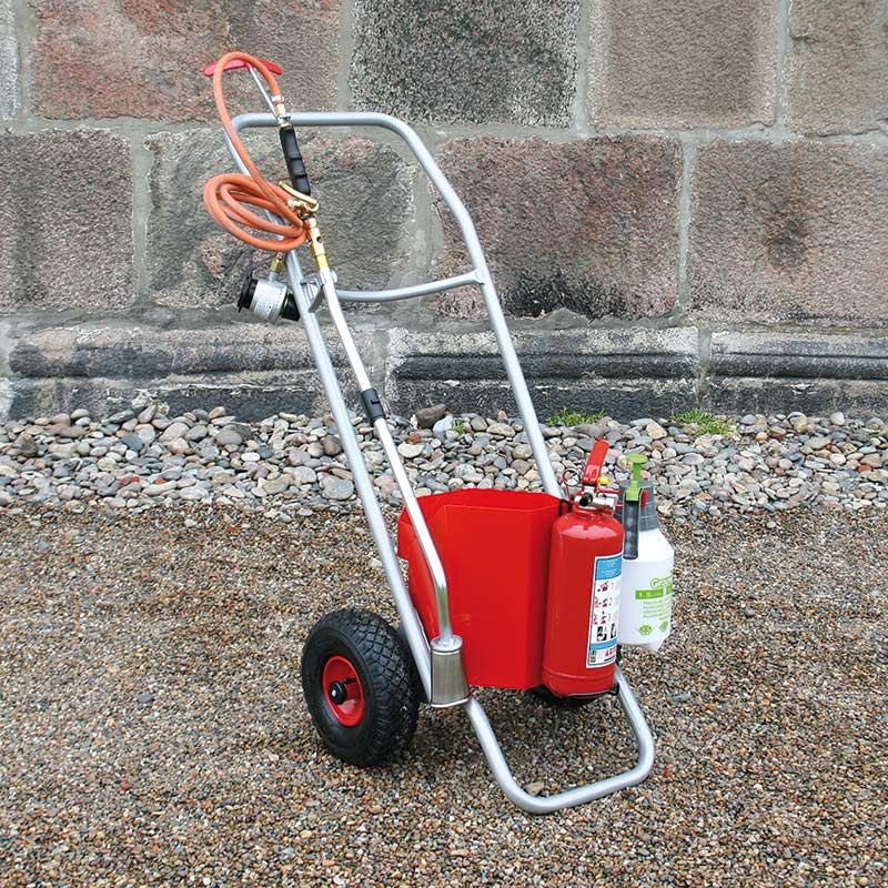 Handy flaskevogn, der kan bruges til alle gængse håndbrændere. Pulverslukker og vandsprøjte medfølger.