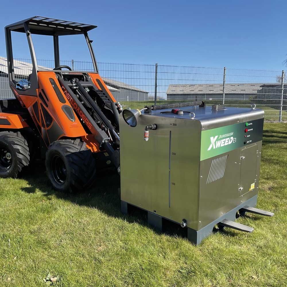 Rammen til pallegafler gør det muligt at transportere X-WEED varmvandsanlæg med din minilæsser eller andet maskinel. Denne ramme udgør den primære støttestruktur, der tillader pallegaflerne at løfte og transportere din X-WEED varmvandsanlæg sikkert og effektivt.