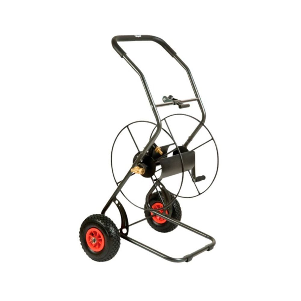 Professionel slangevognssæt i metal. Slagevognen er udstyret med et ergonomisk og blødt håndtag.