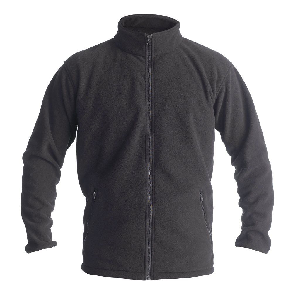 Klassisk sort fleecejakke i 100% polyester til arbejds- eller hverdagsbrug. Er udstyret med 2 lommer med lynlås, samt 1 inderlomme.