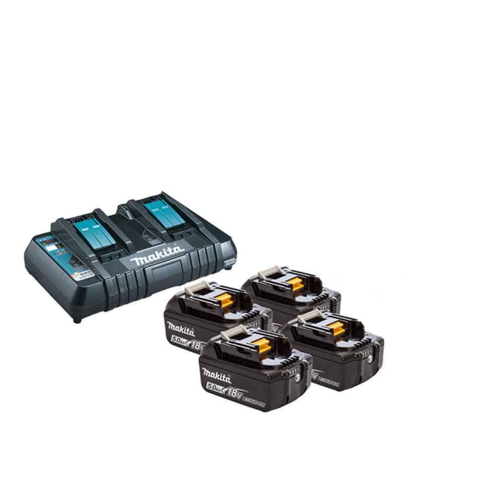 - Batteripakke bestående af dobbelt lynlader, 4X18V - 5,0Ah Li-Ion batterier
