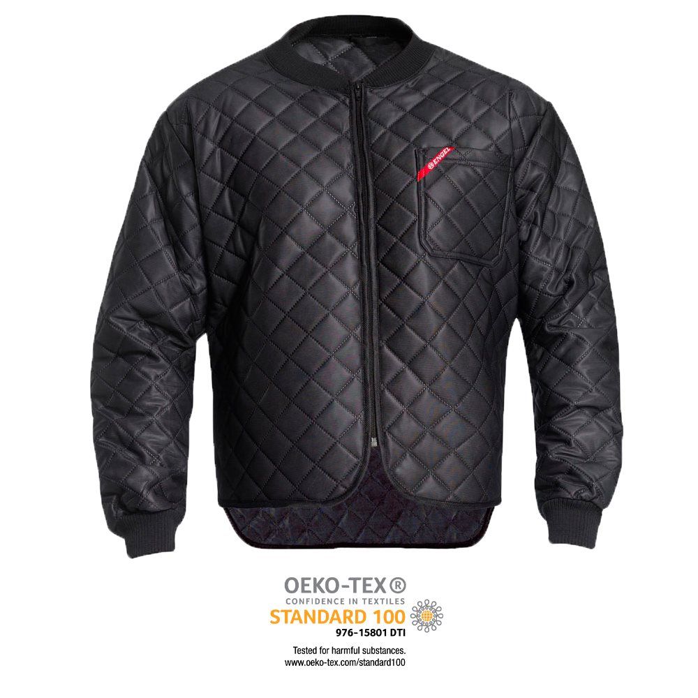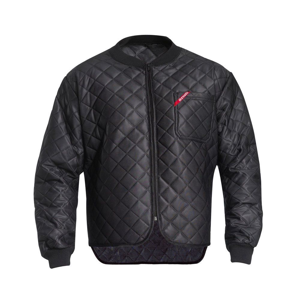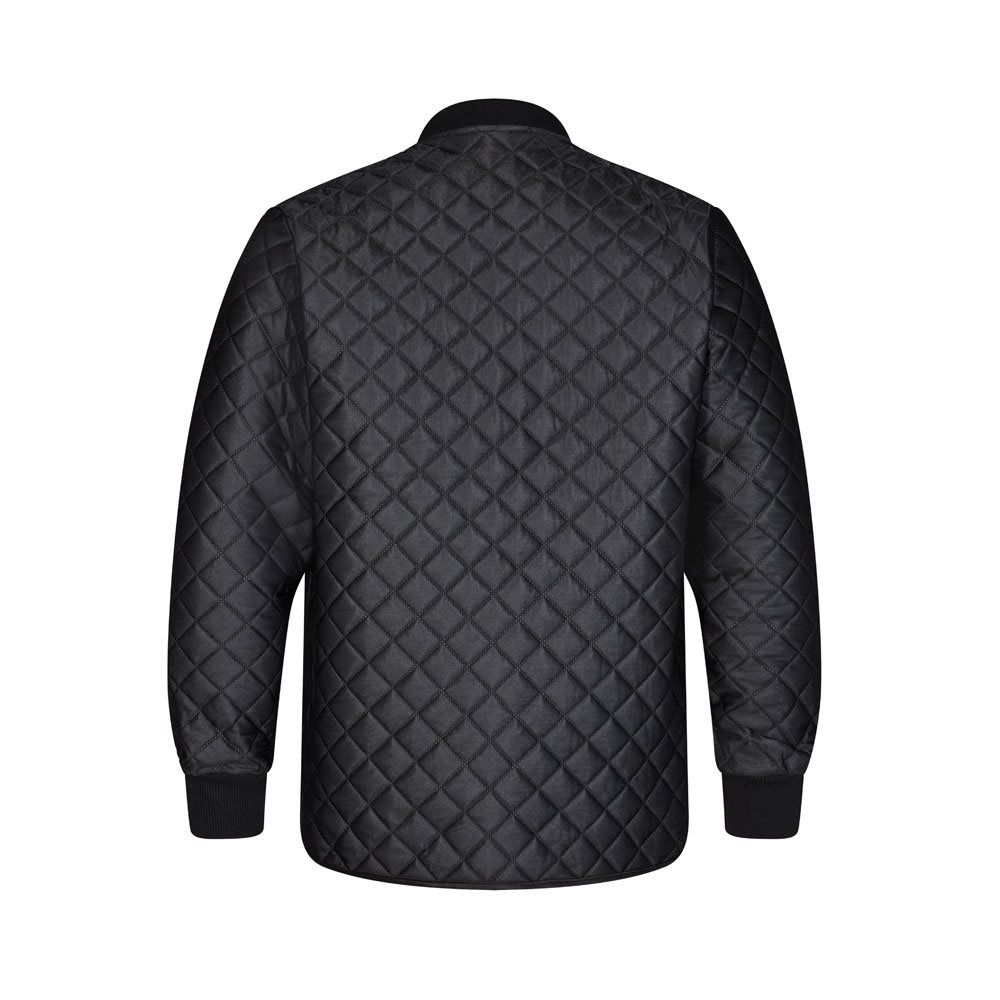 Termojakke med lang ryg. En brystlomme. Ribkant i krave og håndled. Svejset, så trådbrist undgås.