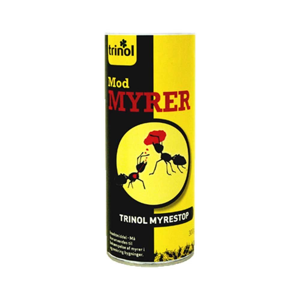 Trinol Myrestop anvendes til bekæmpelse af myrer indendørs ved spredning . Til indendørs bekæmpelse ved spredning anvendes 10 g pr. m2.