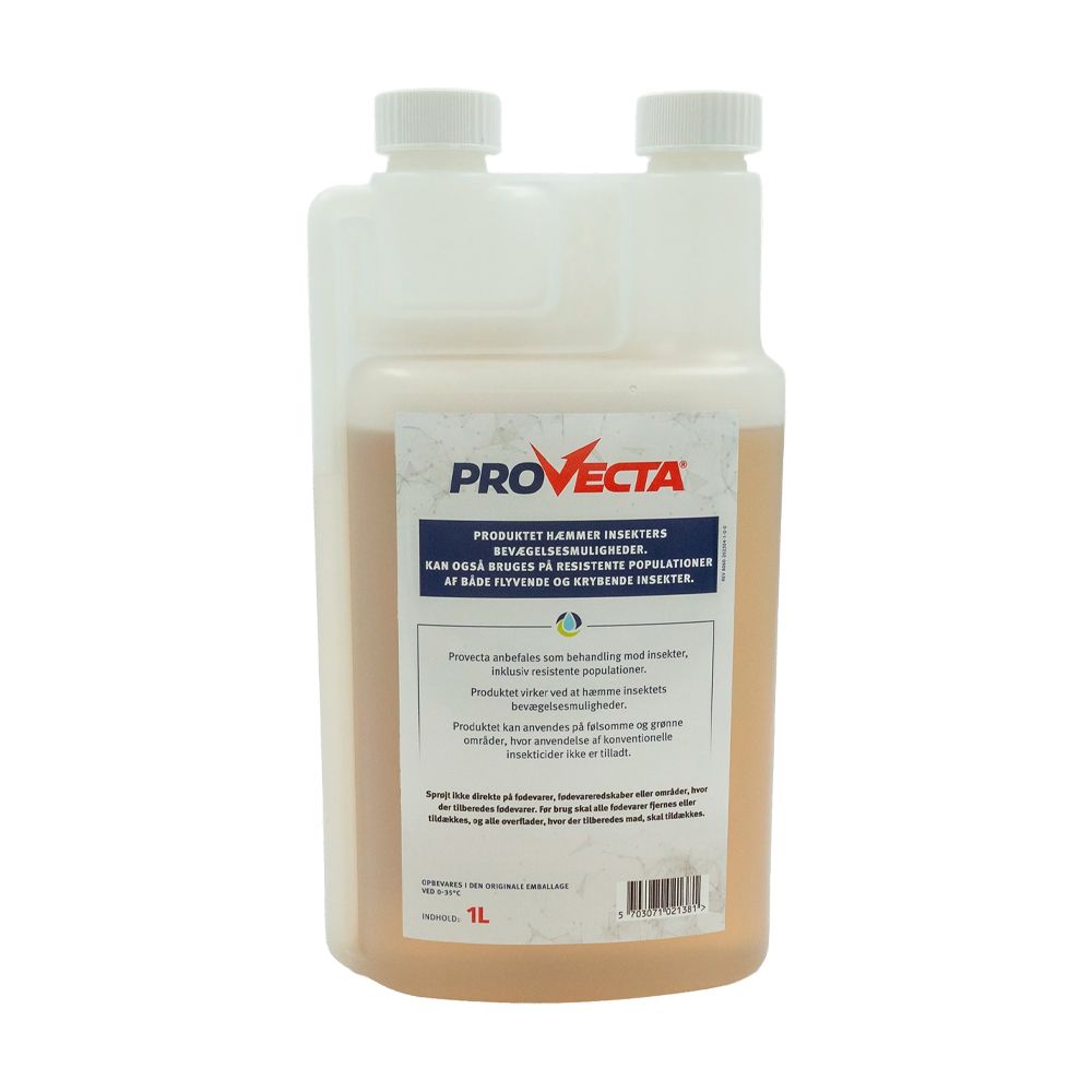 Produktet virker via en fysisk mekanisme, som øjeblikkeligt hæmmer insekternes bevægelighed. Når midlet sprøjtes direkte på insekterne, dannes en netlignende struktur omkring dem, som forhindrer videre bevægelse. Denne virkemåde gør Provecta særligt effektiv – også mod resistente insektpopulationer, hvor traditionelle insektmidler ofte kommer til kort.