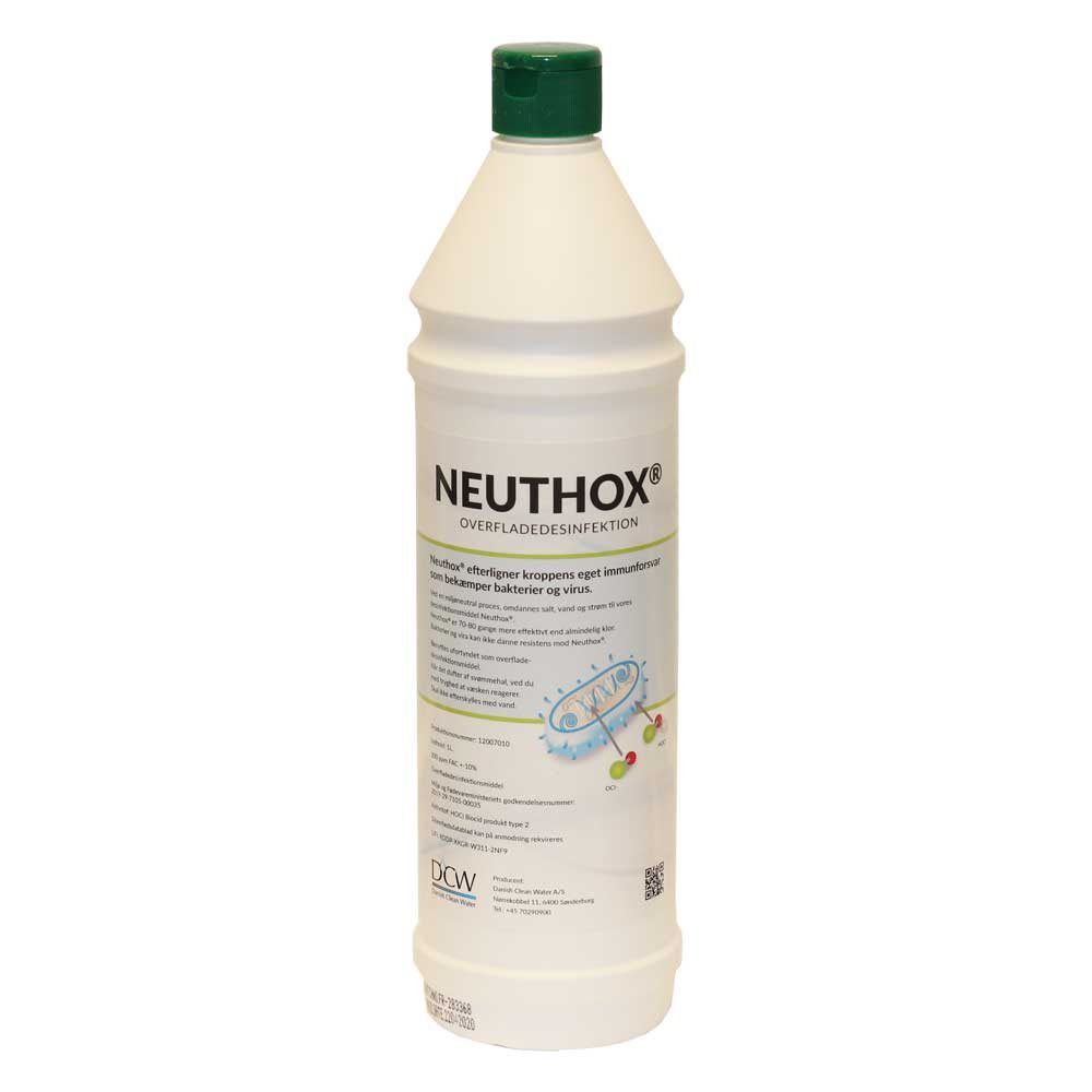 Løsningerne fra Neuthox er vandbaseret desinfektion med hypoklorsyre til overflader. Produkterne er testet effektiv efter EN 13697:2015 mod bakterier samt EN 14476 mod virus, herunder corona-virus. Neuthox er desuden godkendt til brug på overflader i direkte kontakt med fødevarer og er dermed også fødevaregodkendt.