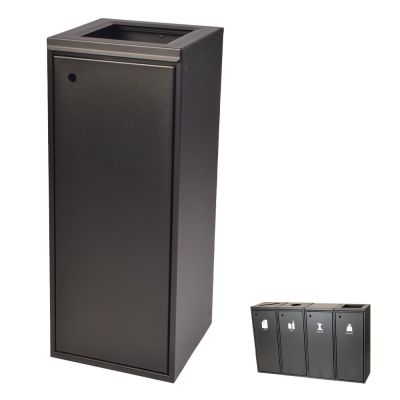 Stilren affaldsbeholder i pulverlakeret stål. Denne serie af affaldssbeholdere giver mulighed for at sammensætte en løsning efter behov til affaldssortering. Man kan via hullerne der er placeret i top og bund i siderne, nemt tilkoble flere stativer alt efter hvor mange affaldsfranktioner man ønsker. Affaldsbeholderne kommer med forskellige låg og indkasthuller til flere varianter af affaldsfraktioner.