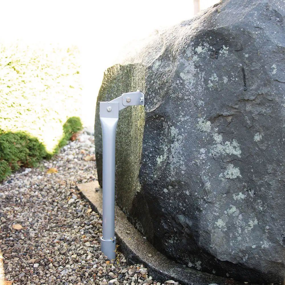 Gravstenssikringen er malet i en grå RAL farve, der ikke syner af meget og derved ikke skæmmer gravstedet.